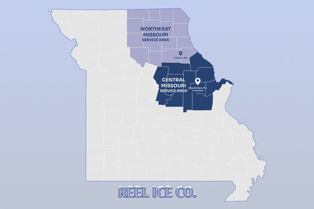 Reel Ice Co. provides ice delivery services across Central and Northeast Missouri from our two hubs in Warrenton and Center, MO. We proudly serve more than 600 customers across industries like retail, industrial, food service, and more. From our Central Missouri hub, we deliver to Columbia, Jefferson City, and nearby areas, while our Northeast hub extends service all the way to Missouri’s northern border, ensuring every need is met.
